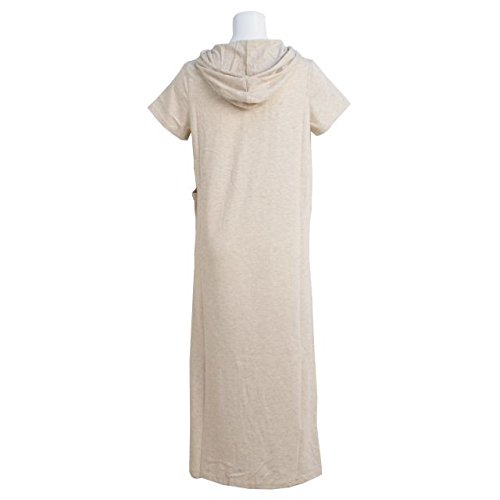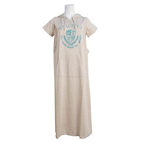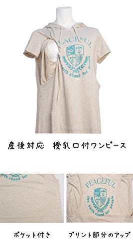 授乳服 マタニティ 半袖 ワンピース 授乳口付 カレッジ風 パーカー マキシワンピース ベージュ-M2815 L