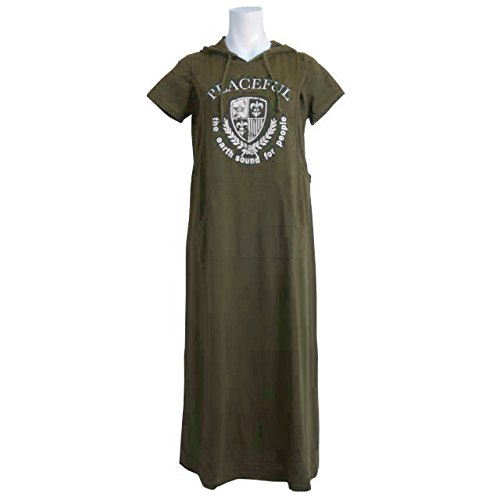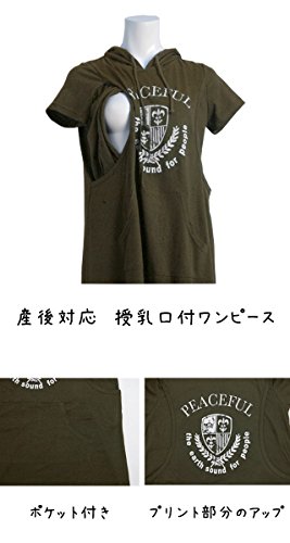 授乳服 マタニティ 半袖 ワンピース 授乳口付 カレッジ風 パーカー マキシワンピース カーキ-M2815 M