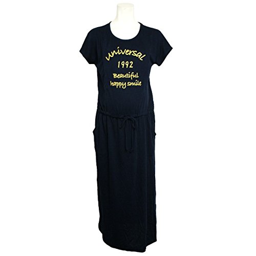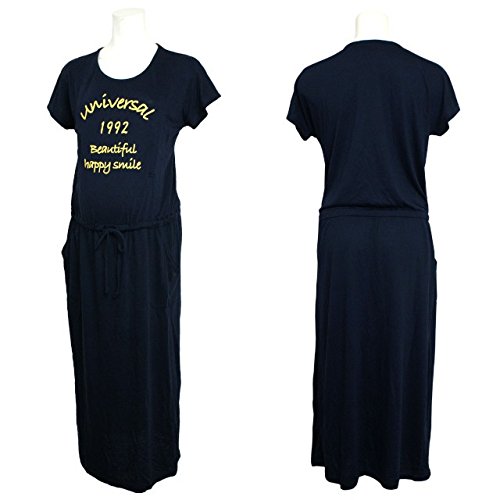 授乳服 マタニティ 半袖 ワンピース 授乳口付 カレッジ風 マキシワンピース ネイビー-M2812 M