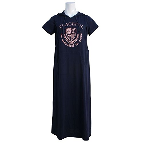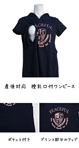授乳服 マタニティ 半袖 ワンピース 授乳口付 カレッジ風 パーカー マキシワンピース ネイビー-M2815 M