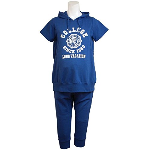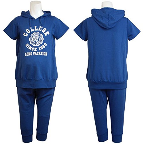 授乳服 マタニティ 半袖パーカー&ハーフパンツ スウェット 上下セット ルームウェア ブルー-M2100 M