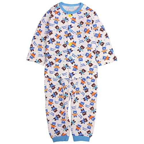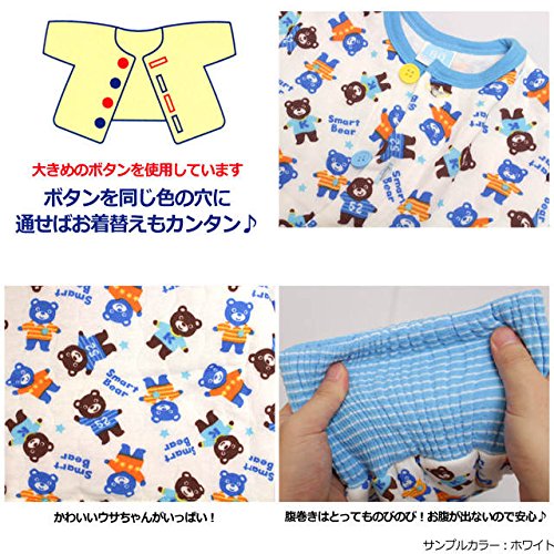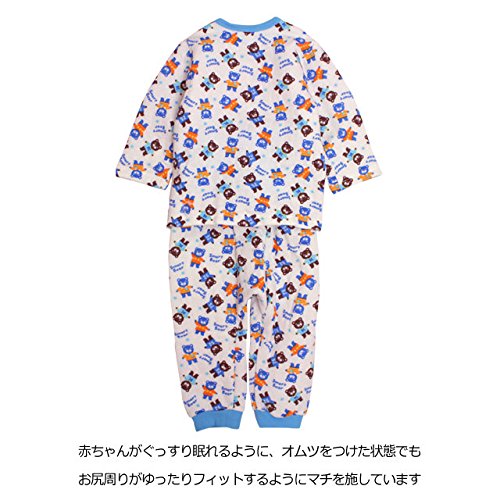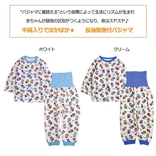 パジャマ ベビー 赤ちゃん 男の子 中綿 綿100% クマ柄 腹巻き付 長袖 寝巻き 6254AA ホワイト 90cm