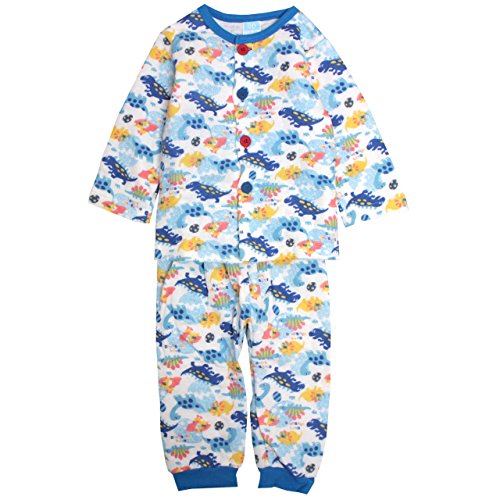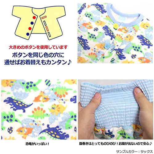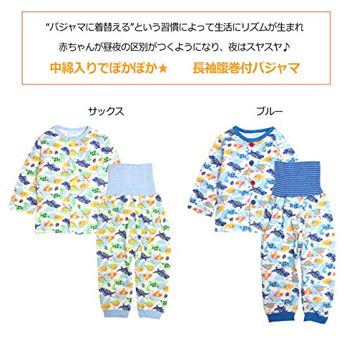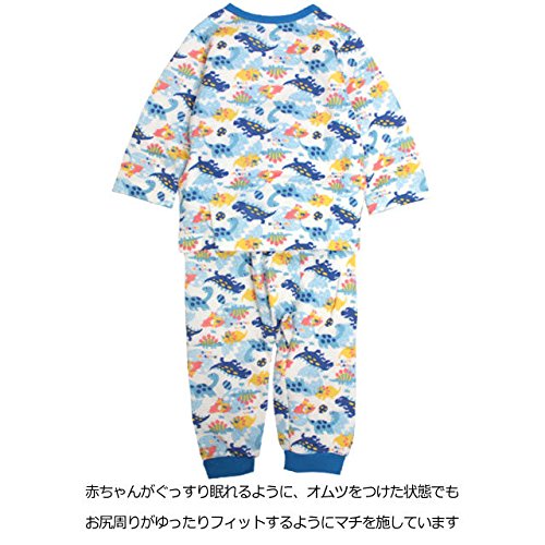 パジャマ ベビー 赤ちゃん 男の子 中綿 綿100% 恐竜柄 腹巻き付 長袖 寝巻き 6250AA ブルー 80cm