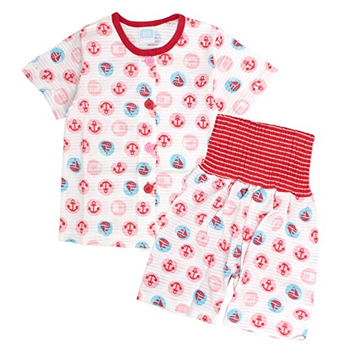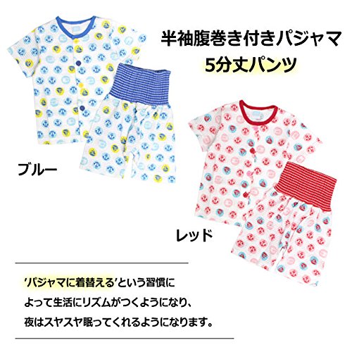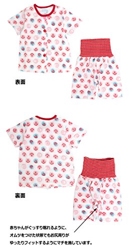 パジャマ ベビー 女の子 腹巻付き 丸首 前開き 半袖 五分丈 パジャマ 寝巻き レッド 90cm