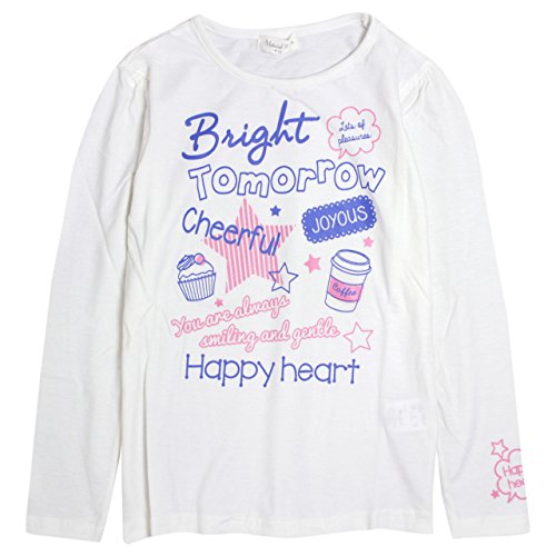 Tシャツ 子供 ジュニア キッズ 女の子 スター プリント 長袖Tシャツ ホワイト-B 140cm