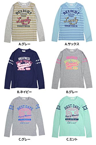 Tシャツ 子供 ジュニア キッズ 女の子 スター プリント 長袖Tシャツ グレー-C 130cm