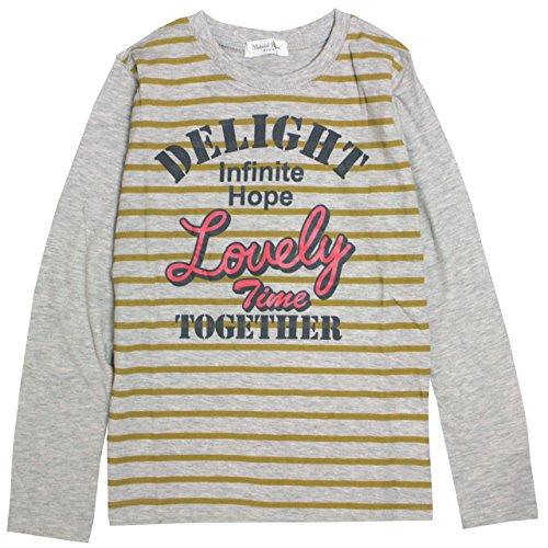 Tシャツ 子供 ジュニア キッズ 女の子 ボーダー プリント 長袖Tシャツ グレー-A 140cm