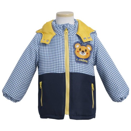 ジャンパー 中綿ジャケット ベビー 男の子 クマワッペン 防寒 フード コート ブルー 95cm