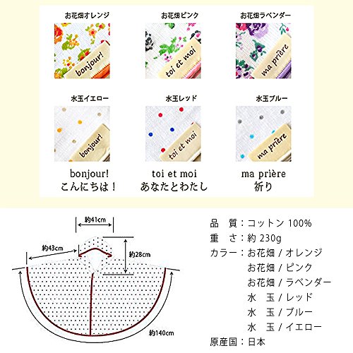 - お花畑と水玉の2タイプ。こだわりガーゼを4枚も重ねた風合いの良さは絶品。お使いいただくほどにふんわりとした柔らかさが増します。プリントから縫製すべて日本工場で丁寧に仕上げています。ガーゼの特性上、約1~2cmほど縮みますが、それらも考慮して設計していますのでご安心ください。