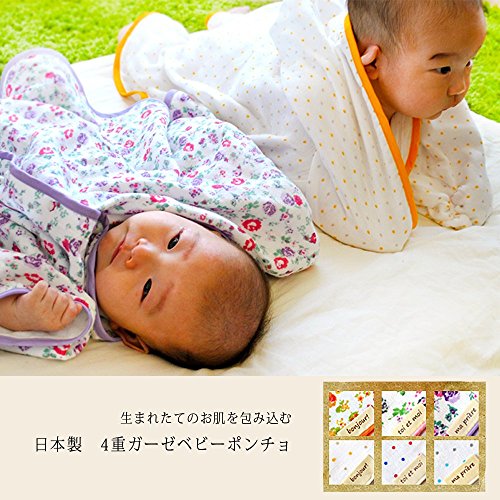 - 赤ちゃんのお肌は分泌物が多くて常に清潔にしていないとブツブツができたり荒れたりします。でも皮膚が薄く刺激に弱いのでゴシゴシできません。そんなデリケートな赤ちゃんを安心して包み込む上質なガーゼを4枚も重ねたふんわりポンチョです。
