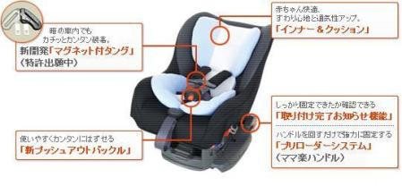 - カンタン固定のプリローダーシステム搭載 安全性・快適性にすぐれたチャイルドシート