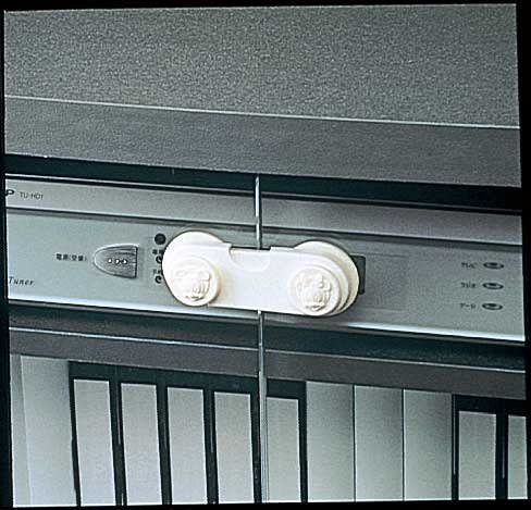 赤ちゃんの開閉のいたずらを防ぐため、両開きの家具の扉をロックします。