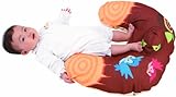 ぐらぐらせず座れるようになるまでは、おすわりクッションでおすわり練習が出来、赤ちゃんがおすわりの目線でガラガラやミラーなどに手を伸ばして遊べる。