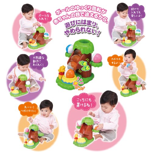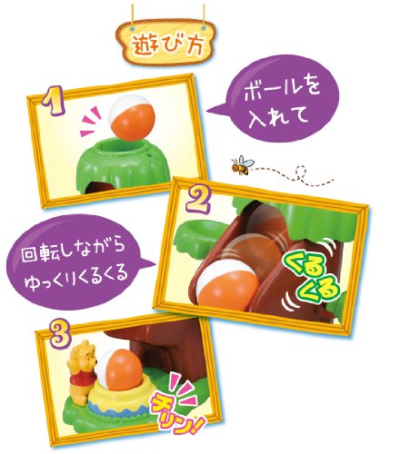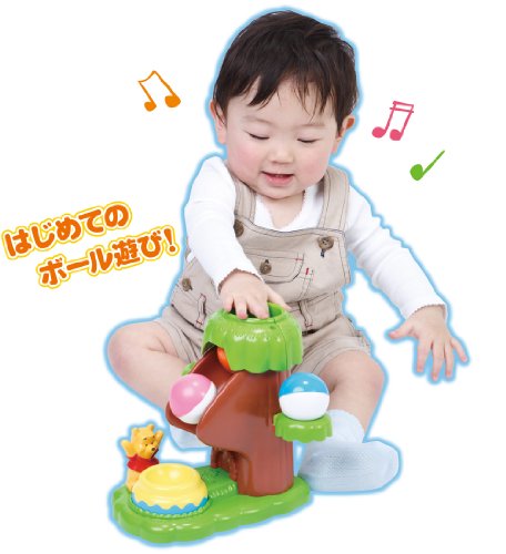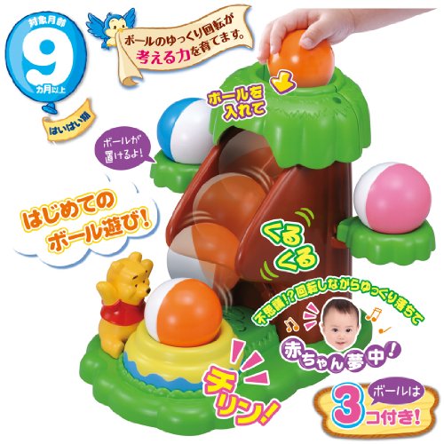 ボールの“ゆっくり”回転が考える力を育てます! 木の上からボールを入れるとコロコロゆっくり回転して、プーさんのハニーポットに落ちて「チリン」となります。 セット内容のボールは3個続けて穴に入れられます。 ボールは木の横の左右の枝木にのせられます。 【セット内容】 本体、ボール×3個 ■対象年齢:0才9ヶ月以上 ■パッケージサイズ:約240×215×155(mm) ■商品サイズ:約230×212×215(mm)