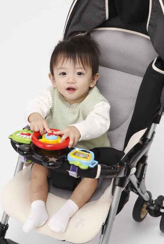 本商品は、ベビーカーやバギーにつけるとミッキーの愉快な車に大変身するゴーゴーハンドルです。 ハンドルをまわすと星のライトが光ります。 色々なところをさわると音が鳴ったりと遊ぶ事ができます。
