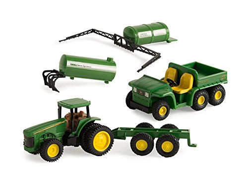 Fun farming play can be had with this great John Deere 3' 5-piece value set. The set includes a John Deere Tractor and Gator as well as a universal chassis. The Sprayer and Slurry Tank are interchangeable on the chassis. The carpet farmer is going to love