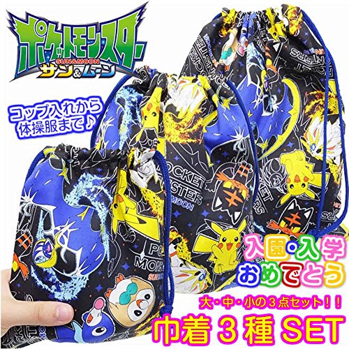 ポケットモンスター サン&ムーン 巾着袋 きんちゃく 男の子 男児 コップ袋 給食袋 体操服袋 fo-phk-600a 3種SET