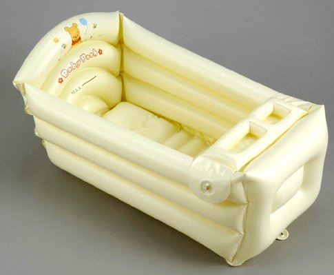- 空気で膨らまし、赤ちゃんを支えるままの手に優しいベビーバス。