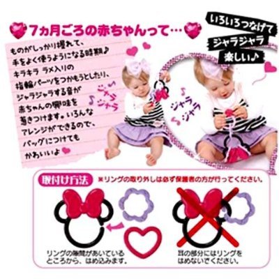 いろんな形のリングでつなげ方アレンジ自由! キラキララメ入りの指輪パーツをつかもうとしたり、ジャラジャラする音が赤ちゃんの興味を惹きつけます。