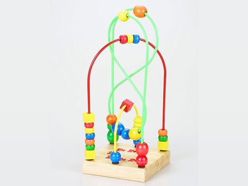 「エデュコベアーハッグ」は、色、数、音、空間などの認識が刺激される木のおもちゃです。メイヤーの上で、ビーズを動かしながら、数を数えること、色や形の大きさの違いを覚えることができます。曲がりくねったワーヤーにそってビーズを動かすことが、手と目の動きを一致させ、目で物を追う力を養います。8匹のテディーベアと一緒に楽しく遊びましょう。10個のビーズを大きな8をかくワイヤーに通しました。小さな手でも掴みやすい大きさのビーズです。