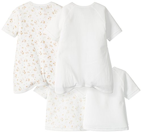 - 生まれてすぐ着せられる短肌着2枚と、脚を動かしても裾がめくれないコンビ肌着2枚のセットです。