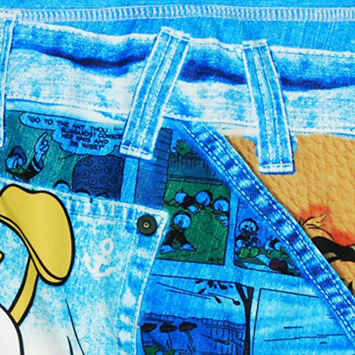 ♪ドナルドダックがパネル調の柄にダメージ調の重ね着風プリントがされています。 ポリウレタン混紡のため伸縮性に富み着脱しやすい素材です。