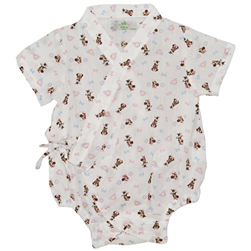 ♪棉100%楊柳素材にベビーミニーを全体にプリント。 汗ばむ季節のお肌にやさしい畝のある楊柳素材。 脇紐仕様で調整できお腹の出る心配がなく安心です。