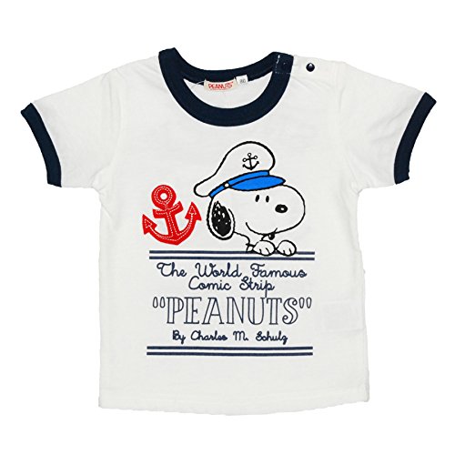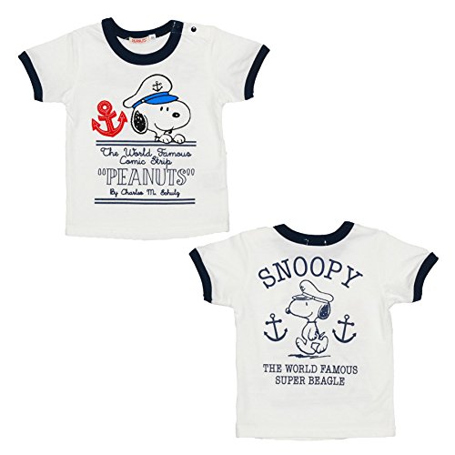 ◇◆スヌーピー【ピーナッツ】国内正規品◆◇スヌーピー 胸のイカリ型エンブレムつき半袖プリントTシャツ (80cm, ホワイト)