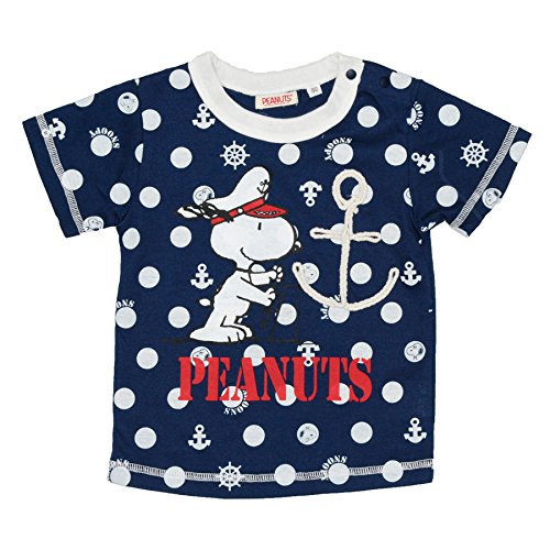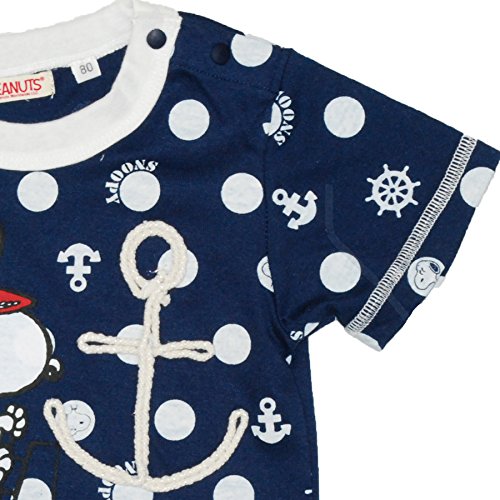 ◇◆スヌーピー【ピーナッツ】国内正規品◆◇スヌーピーイカリのコード刺繍半袖プリントTシャツ (90cm, ネイビー)