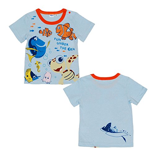 ♪ニモたちが胸いっぱいに泳いでいるプリントTシャツ。 後ろの下部分にもワンポイント。
