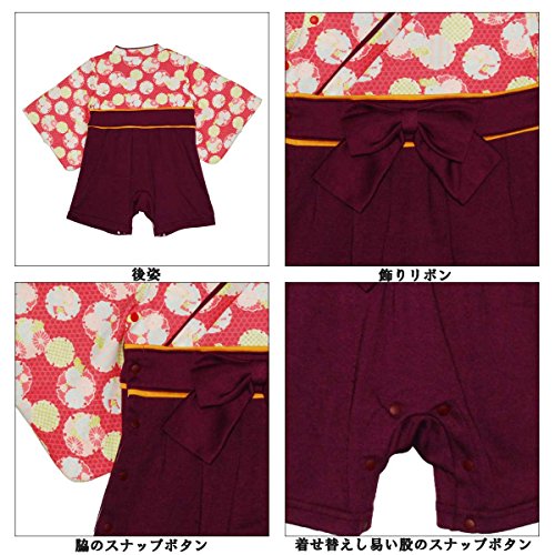 ♪和服の袴を着せやすいロンパースにアレンジしました。 古来伝統の菊柄です。