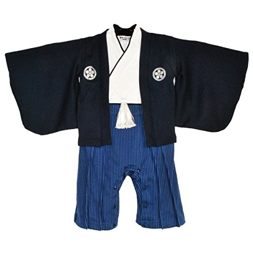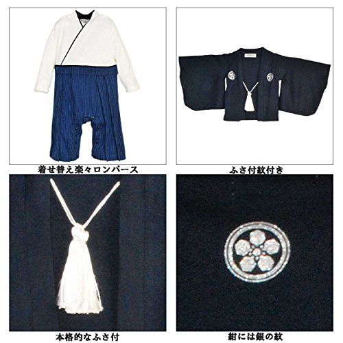 男の子 紋付はかま ロンパース カバーオール お食い初め お誕生日 七五三 端午の節句 お祝い 70cm80cm (80cm, コン)