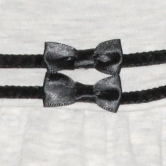 胸のかわいいサテンリボンとすそにレース調プリントをしたジャンパースカート。 無地と千鳥格子の二種類から選べます。