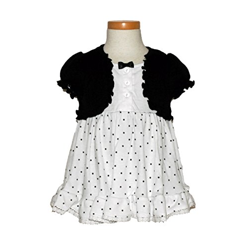 水玉のワンピースにボレロを重ね着したようなロンパース。ボトム部分にスナップボタンがついているので着脱も簡単です。