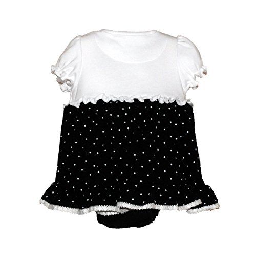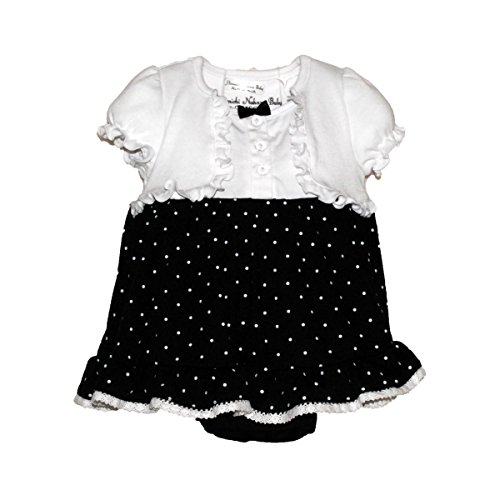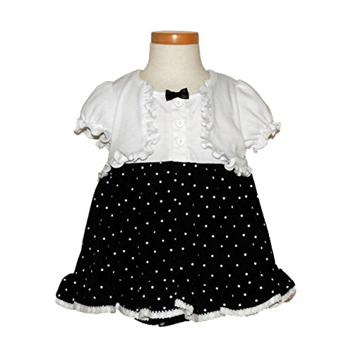 水玉のワンピースにボレロを重ね着したようなロンパース。ボトム部分にスナップボタンがついているので着脱も簡単です。