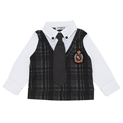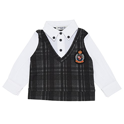 ★☆メンズクラブミニMen's Club Mini☆★カットソーベストと<br>オックスフォード素材シャツの見せかけトップス(タイつき)80cm:90cm:95cm (90cm, ブロックチェック)