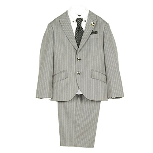 ♪「晴れの日」に活躍。 結婚式、七五三、Xmas、お正月、入園入学等のフォーマルの お席にお使いいただけます。 ジャケット・パンツ・シャツ・ネクタイ・ポケットチーフ・ラベルピンの 6点セット。ネクタイ・チーフはリバーシブル仕様。 ジャケットの襟はモードぽいピークドカラーでファッション性アップ。 ■サイズ ●110㎝ ジャケット:着丈48.0cm肩幅31.0cm身幅36.0㎝袖丈40.0cm シャツ :着丈46.0cm肩幅31.0cm身幅35.0㎝袖丈40.0cm ボトム :総脇丈44.0㎝胴囲60.0㎝股下22.0cm ●120㎝ ジャケット:着丈52.0cm肩幅32.5.0cm身幅38.0㎝袖丈42.0cm シャツ :着丈50.0cm肩幅32.5.0cm身幅38.0㎝袖丈42.5cm ボトム :総脇丈47.0㎝胴囲62.0㎝股下23.5.0cm ●130㎝ ジャケット:着丈56.0cm肩幅33.0cm身幅40.0㎝袖丈45.0cm シャツ :着丈54.0cm肩幅33.0cm身幅41.0㎝袖丈45.0cm ボトム :総脇丈50.0㎝胴囲64.0㎝股下25.0cm (注意)実寸のため個体差があります。