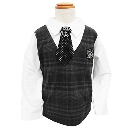 - 素材:ベスト部分 ポリエステル65%・綿35%、シャツ部分 綿75%・ポリエステル25%、ネクタイ 綿100%