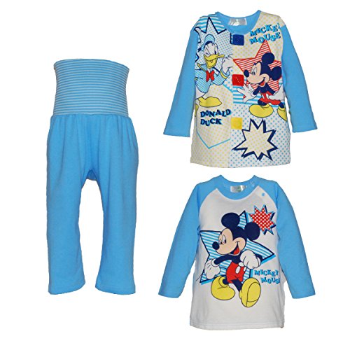 ディズニー【Disney】 ミッキー&ミニー ちょっと厚めの前開きパジャマ+天竺ロングTシャツ三点パジャマ(腹巻つきパンツ) (80cm, ミッキー(80))
