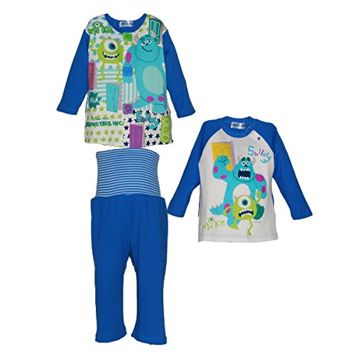 ディズニー【Disney】 モンスターズ ちょっと厚めの前開きパジャマ+天竺ロングTシャツ三点パジャマ(腹巻つきパンツ) (90cm)