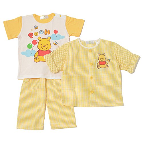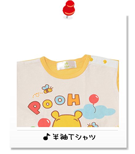 ☆★ディズニー★☆プーさん綿100%サッカーロールアップパジャマtシャツ付(三点セット)80cm:90cm:95cm (80cm, プーさん)