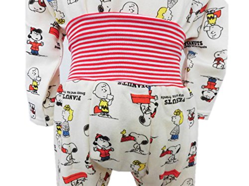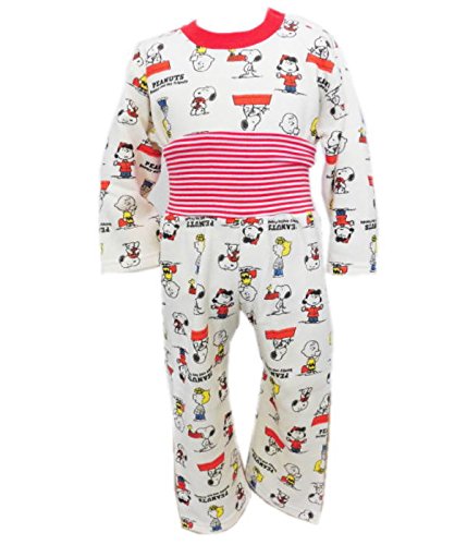 SNOOPY スヌーピー ベビー服 長袖 腹巻付きパジャマ 総柄 裏起毛 90cm