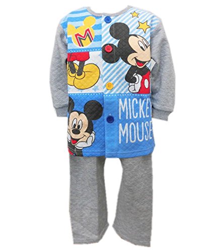 Disney ディズニー ベビー服 ミッキー&ミニー 長袖 腹巻付きパジャマ 前開き (03グレー/90cm)
