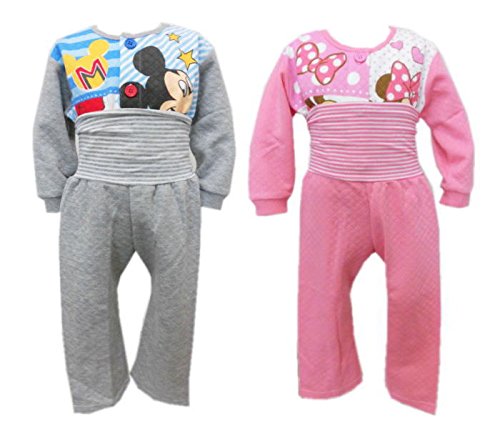 Disney ディズニー ベビー服 ミッキー&ミニー 長袖 腹巻付きパジャマ 前開き (10ピンク/90cm)