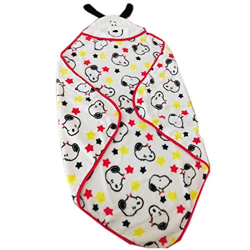 スヌーピーのおくるみです。もこもこフリース素材で防寒対策バッチリ。授乳時や外出時はもちろん、ブランケットとしてもお使いいただけます。出産祝い・誕生祝いなどのギフトにも最適です。