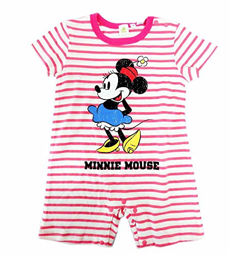 Disney ディズニー ミニーマウス 半袖 ロンパース ピンク ボーダー 70cm