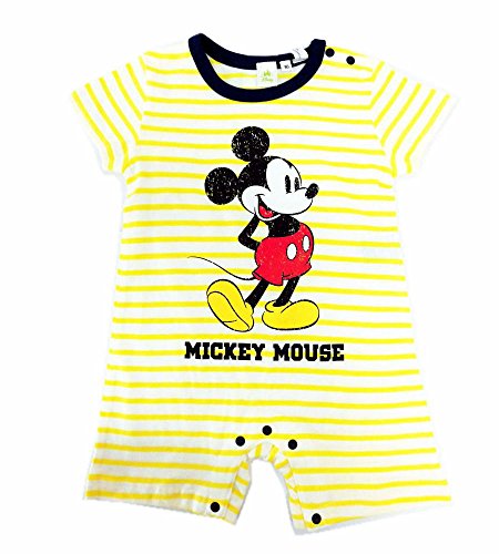 Disney ディズニー ミッキーマウス 半袖 ロンパース イエロー ボーダー 70cm