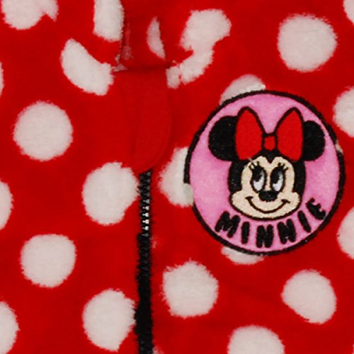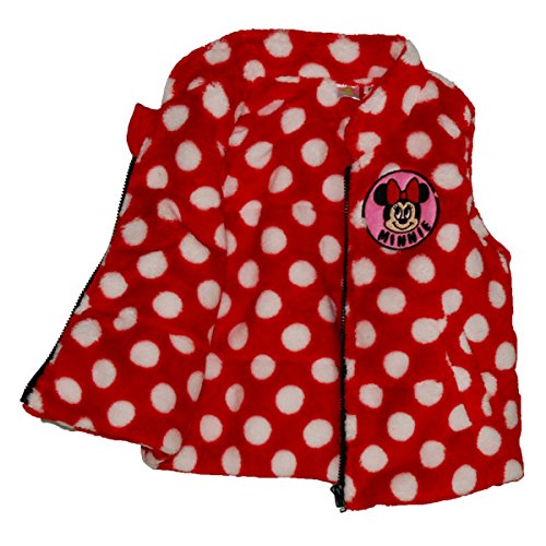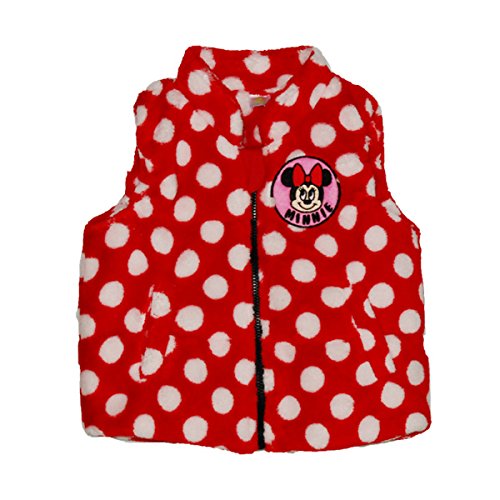 ♪ふわふわフリースが二重仕立てベスト。 ミニーちゃんのワッペンが胸についています。 ファスナーにはお肌を守るカバー付。