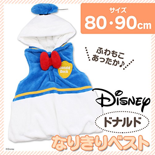ベビーサイズのベストが新登場☆男の子や女の子が大好きなディズニーキャラクター、ドナルドのフード付きベストです。かわいいドナルドになりきって遊べます♪スナップボタンでお着替えも楽々♪ふわもこのボア生地を使用した、寒い季節の防寒対策にもおすすめのアイテムです。プレゼントにも最適!