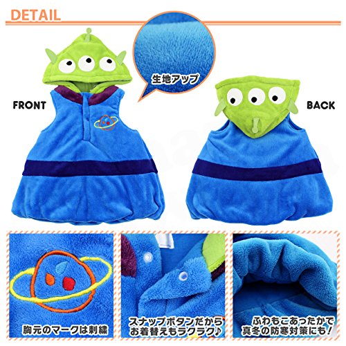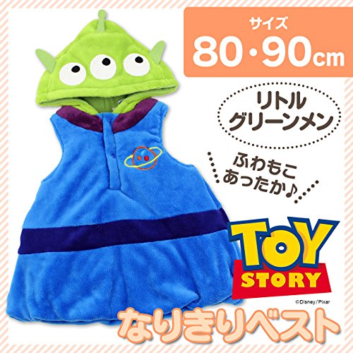 ベビーサイズのベストが新登場☆男の子や女の子が大好きなディズニーキャラクター、トイストーリー「リトルグリーンメン」のフード付きベストです。かわいいリトルグリーンメンになりきって遊べます♪スナップボタンでお着替えも楽々♪ふわもこのボア生地を使用した、寒い季節の防寒対策にもおすすめのアイテムです。プレゼントにも最適!